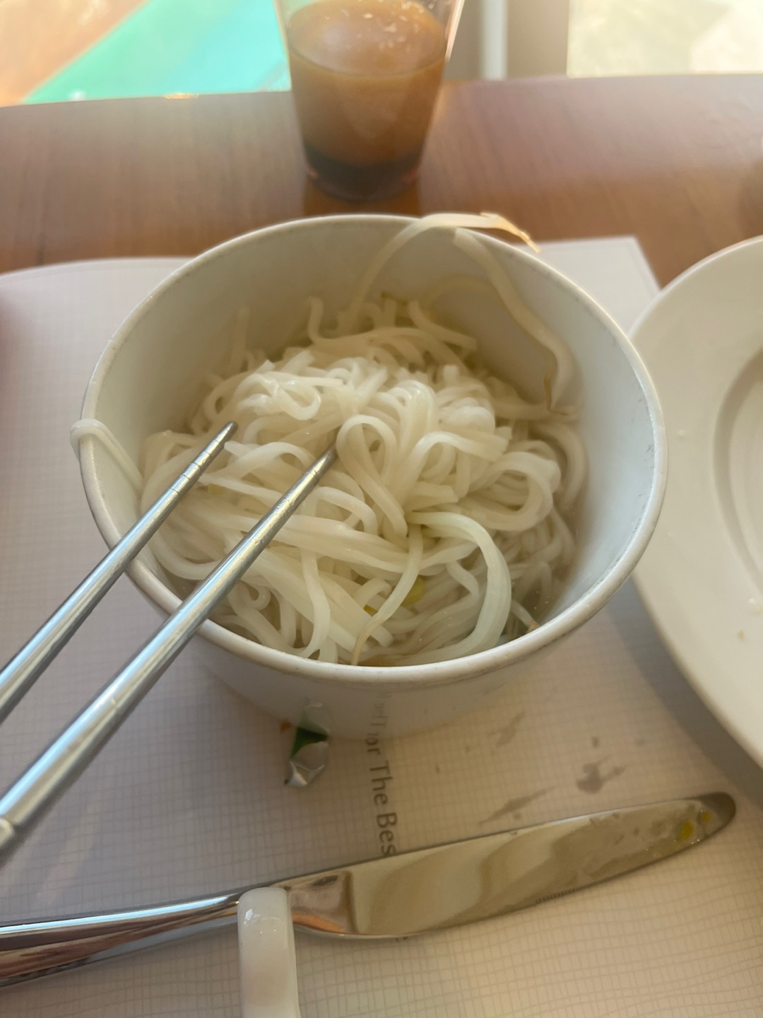 10살인 큰 아이가 즉석 쌀국수를 만들어 왔는데, 면만 가득 담아왔네요.