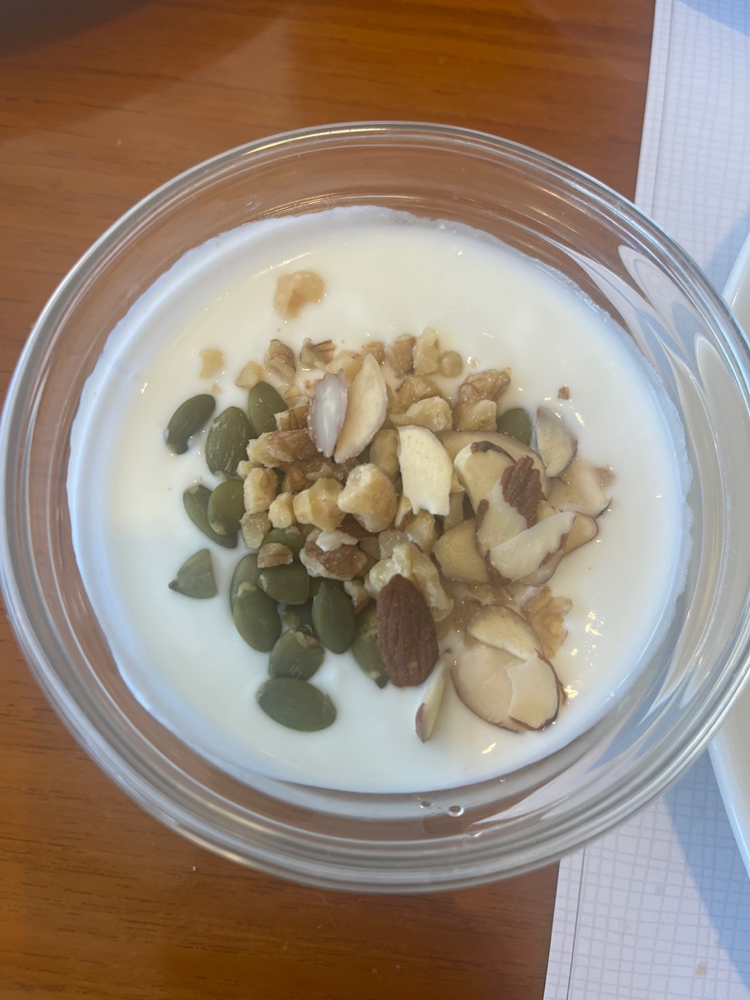 일곱 살 막내는 옷갖 과일과 요거트를 가져왔길래 샐러드를 곁들어 주었습니다. 샐러드는 또 엄마 몫이 되었지만요 :(
