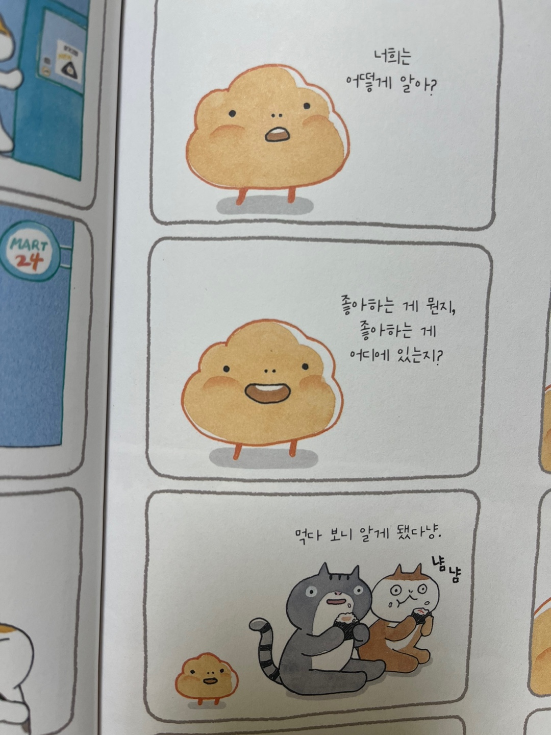 그리고 길냥이를 만난 네 번쨰 슈크림빵은 물어봅니다. 좋아하는 게 뭔지, 어디에 있는지 어떻게 알게 되었냐고.
