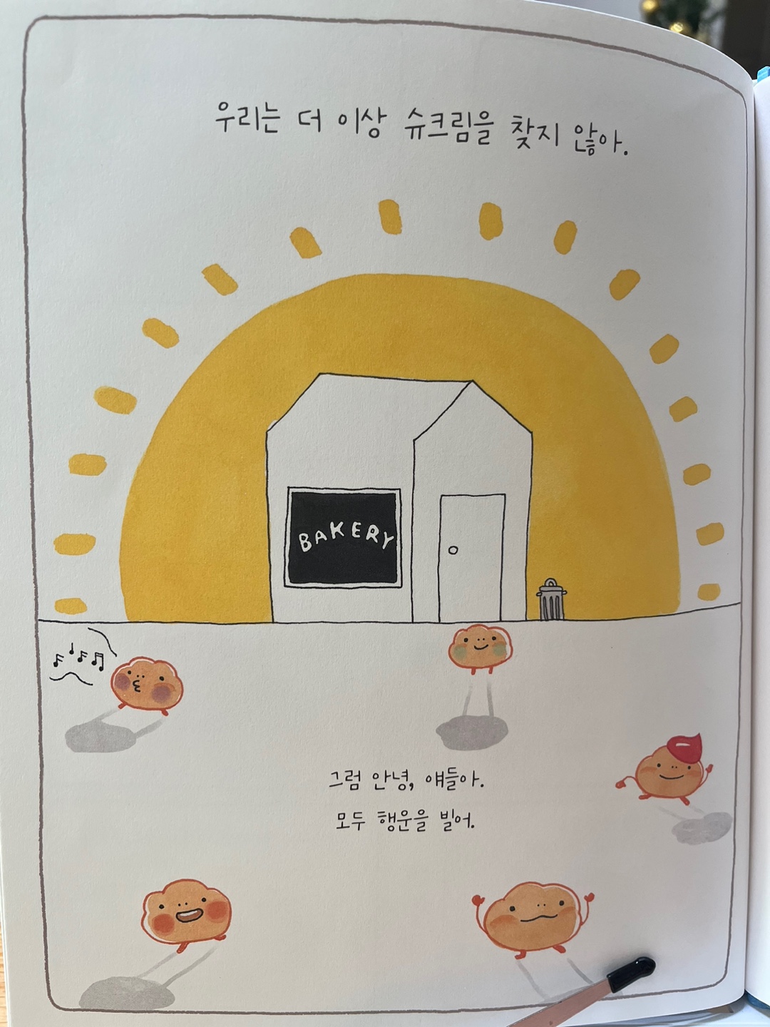 이제 슈크림빵들은 더 이상 슈크림빵이 아니에요. 내 멋대로 빵이 되었죠. 그리고 더 이상 슈크림을 찾지 않습니다. 좋아하는 대로, 하고 싶은 대로, 가고 싶은 곳으로 각자 길을 떠납니다.