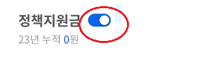 P포인트 정책지원금은 정책지원금 글씨 옆 버튼을 '온'으로 설정하시면 동백전 결제 시 자동으로 사용됩니다.