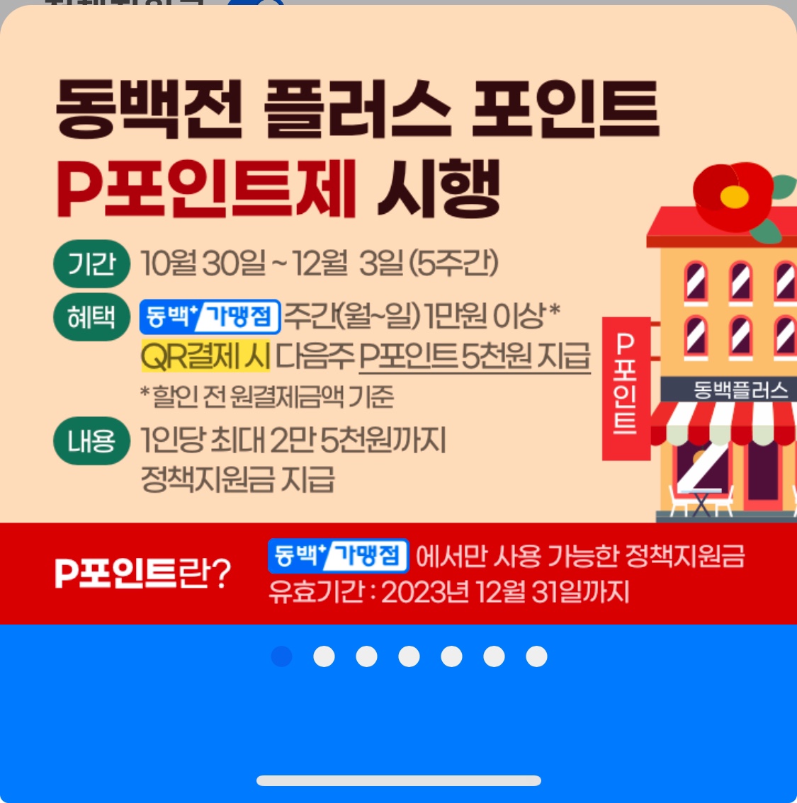 2023년 10월 30일부터 12월 3일까지 5주 동안 동백전 'P포인트제'가 시행됩니다.