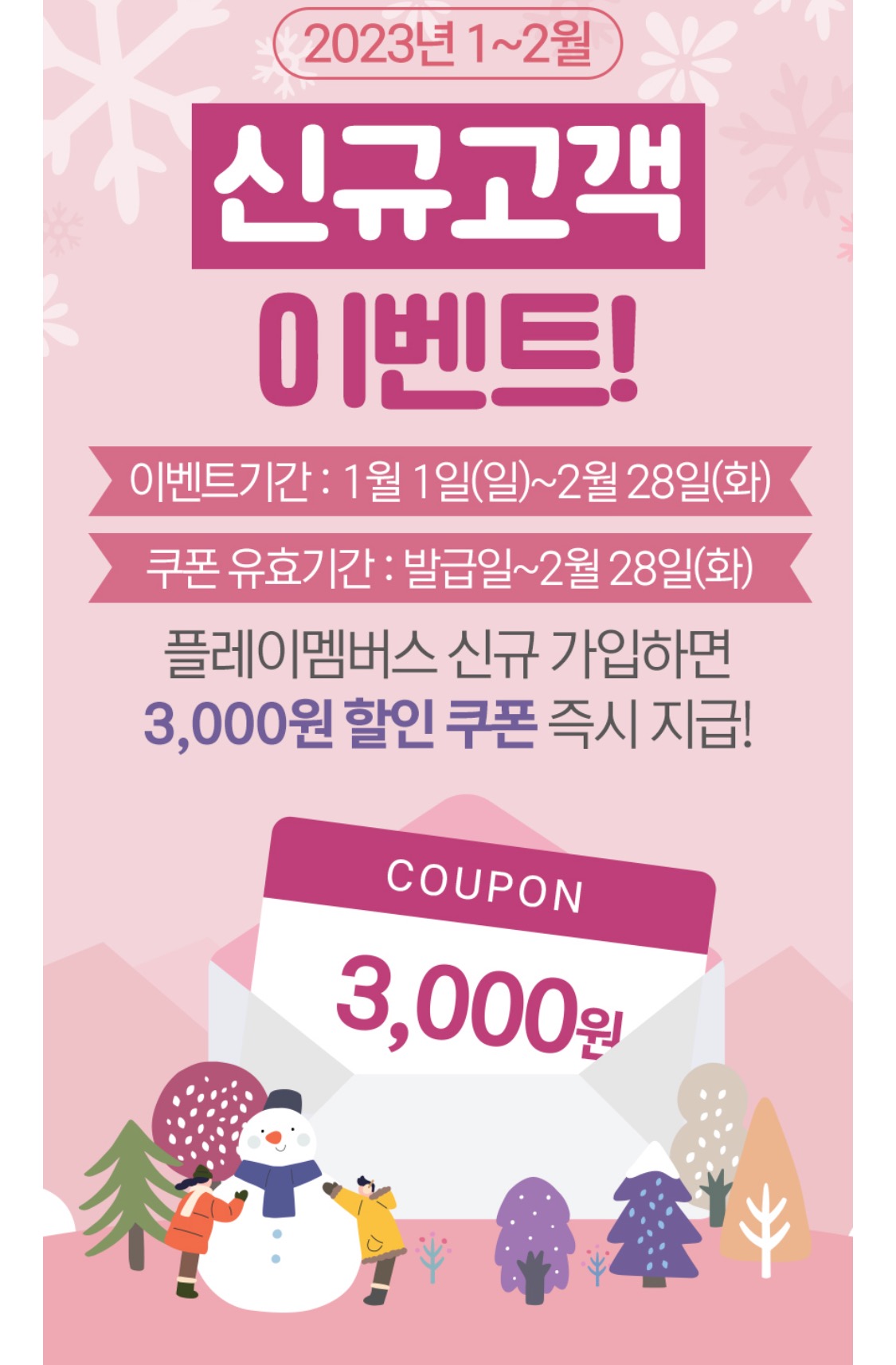 플레이멤버스 앱을 다운로드하시고 회원가입하신 후 첫 이용 시 3000원 할인 혜택을 받으실 수 있습니다.