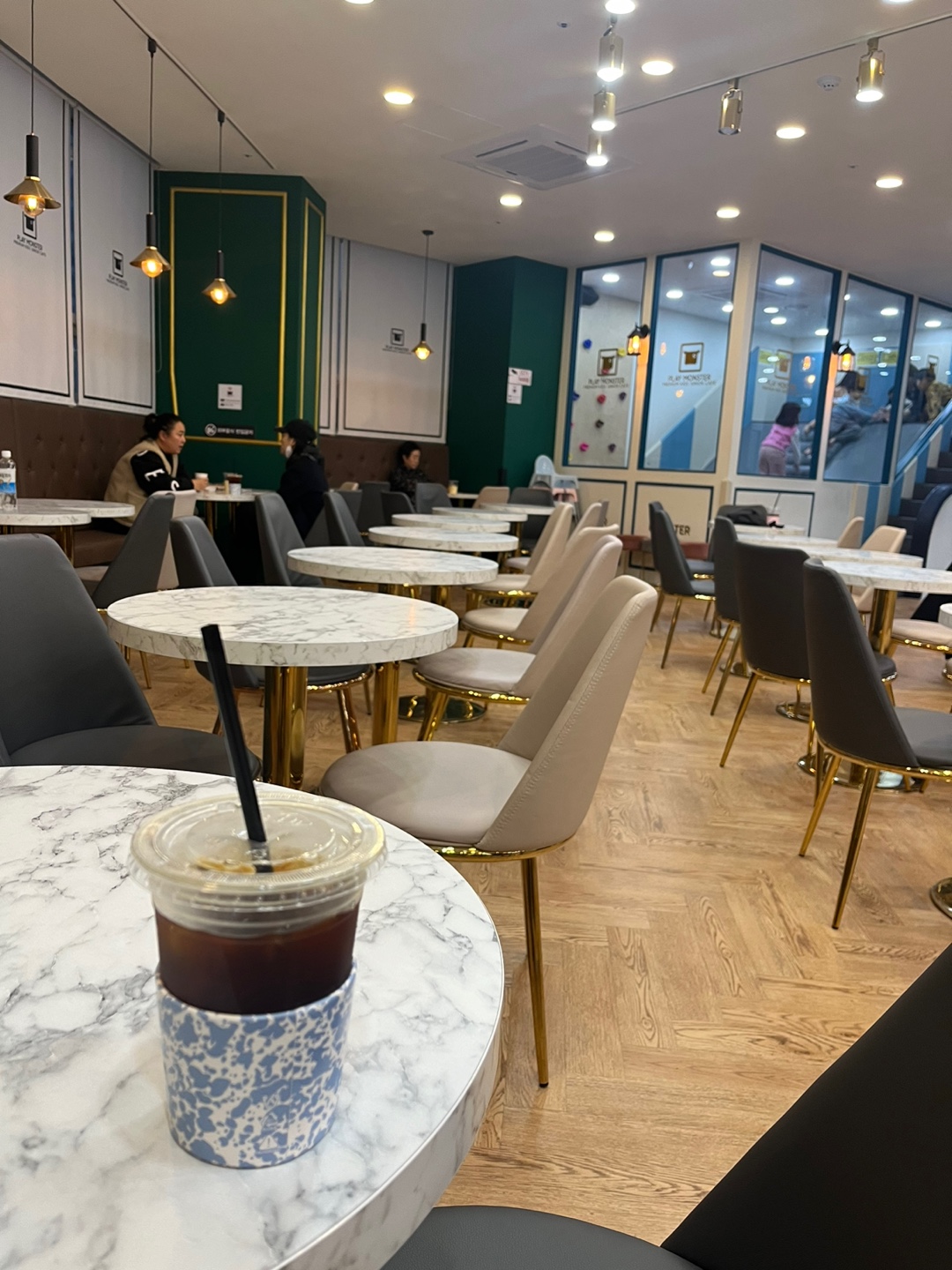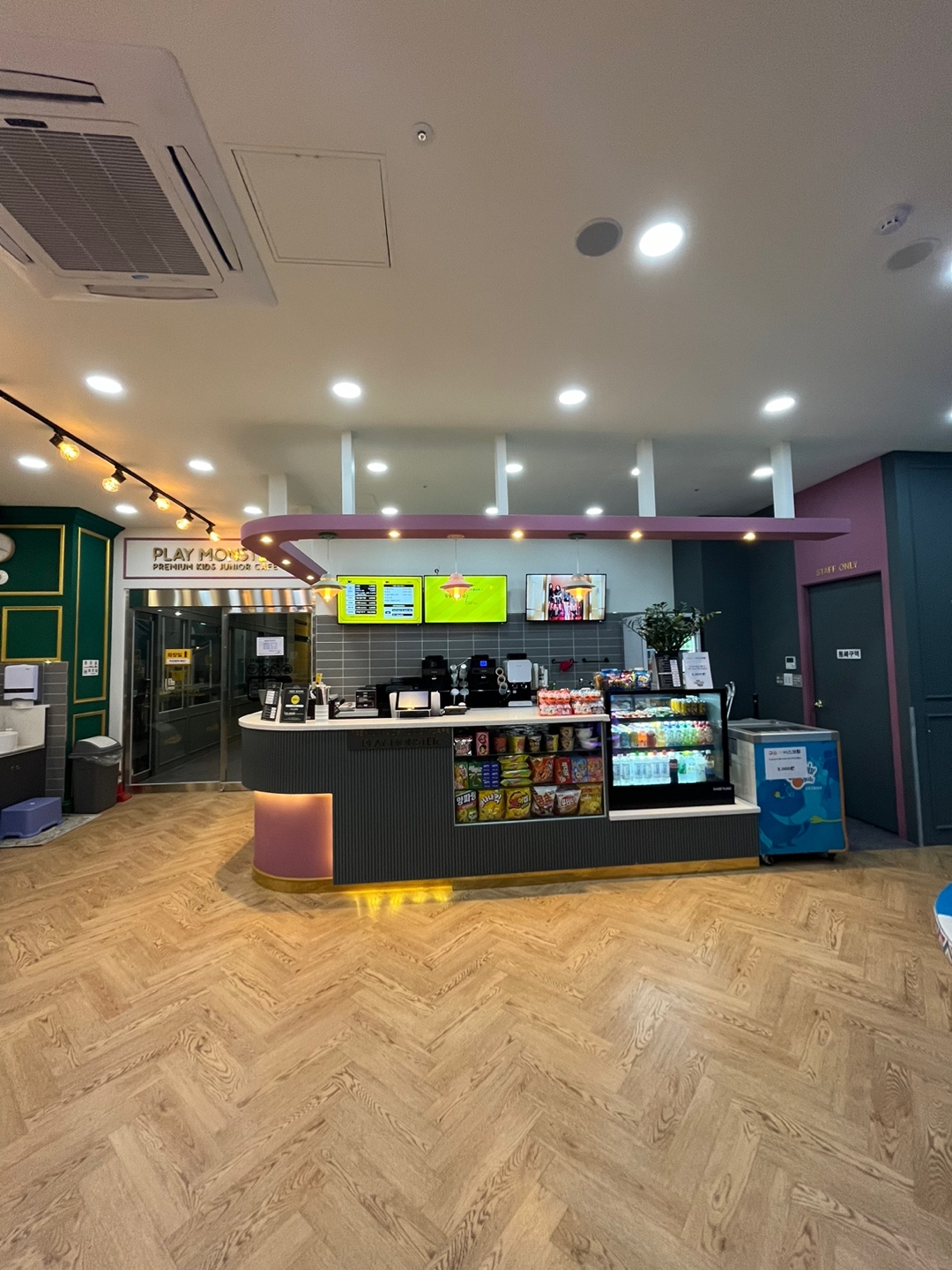 보호자 요금에는 기본 음료가 포함되어 있습니다. 쾌적하고 넓은 카페테리아 공간에서 커피를 마시며 아이들이 노는 모습을 지켜볼 수 있어 마음 놓고 쉴 수 있습니다.
