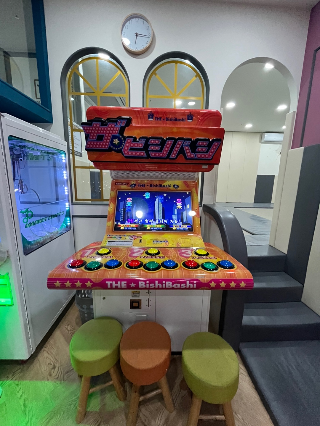 오락실에서 흔히 볼 수 있는 다양한 오락기를 모두 이용할 수 있습니다. 오락실에 있는 웬만한 게임들이 다 있습니다. 펌프를 이용해 보고 싶었는데 펌프는 어린이들만 이용할 수 있더라고요. 다른 오락기는 어른도 함께 이용할 수 있습니다.