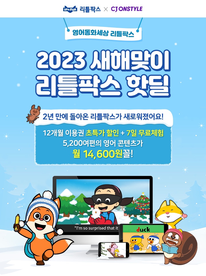 온라인 영어 도서관 '리틀팍스' 핫딜 소식 알려드립니다. 최근 가격 인상이 되어 아쉬웠는데 새해를 맞이하여 CJ onstyle 홈쇼핑에서 20% 할인 이벤트를 한다고 해요.