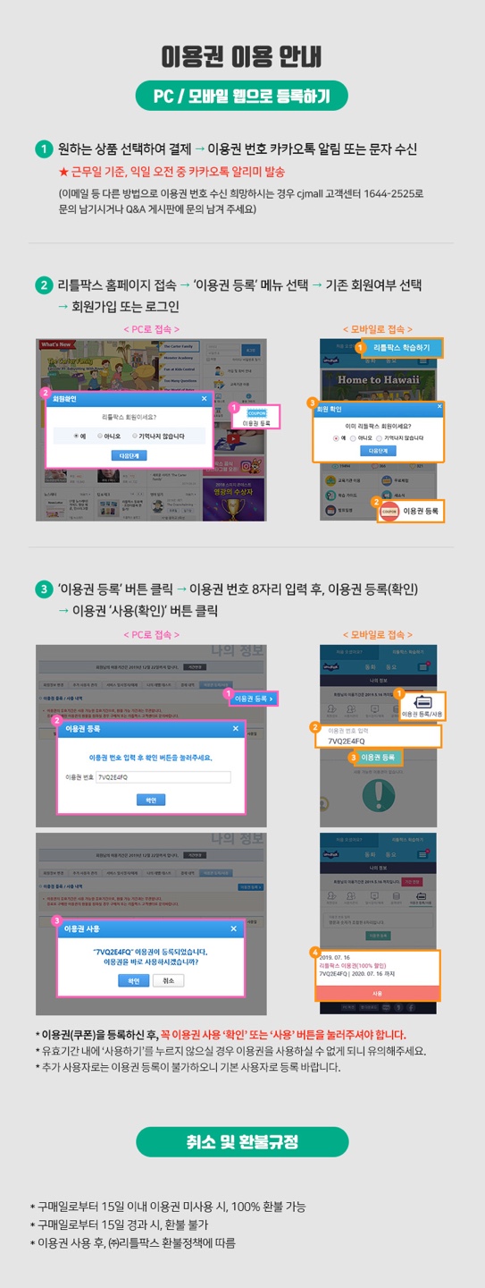 또한 이용권 등록기간은 3개월 이내이니 꼭 홈페이지에 들어가셔서 '사용하기'를 클릭해 주시는 것 잊지마세요.
