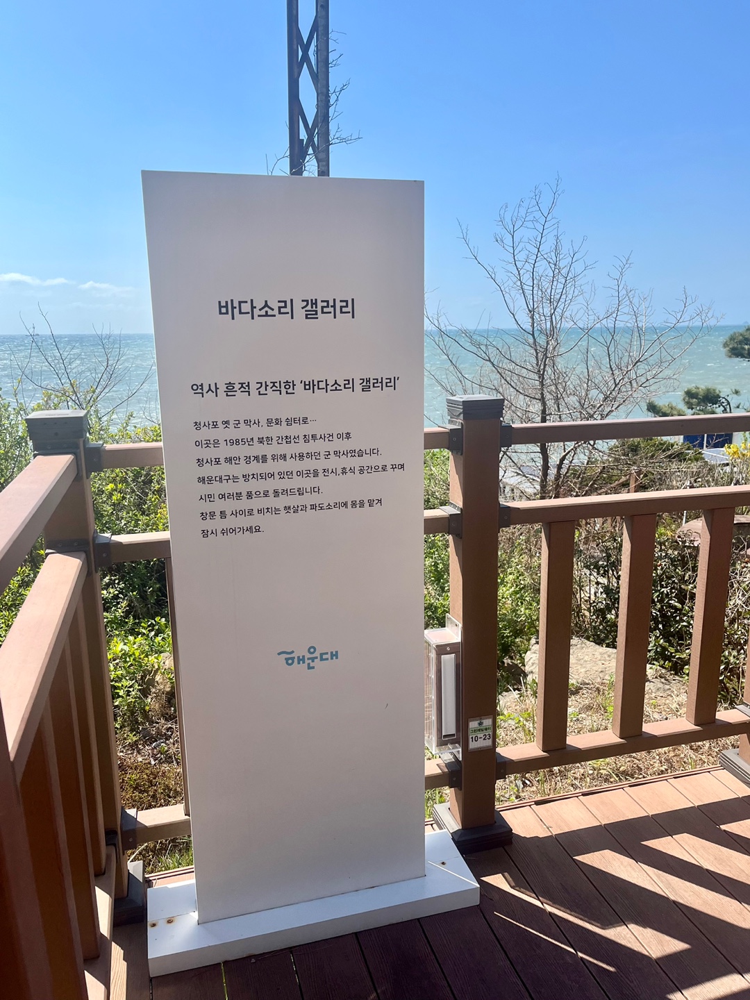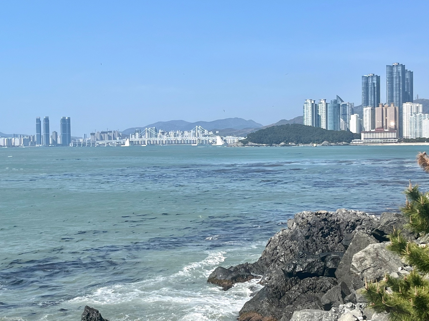 멀리 동백섬과 광안대교가 보입니다. 낮에도 아름답지만 밤에보는 광안대교는 또 다른 매력이 있습니다. 역사적 사연을 간직한 바다소리 갤러리에 앉아 잠시 쉬어가셔도 좋습니다.