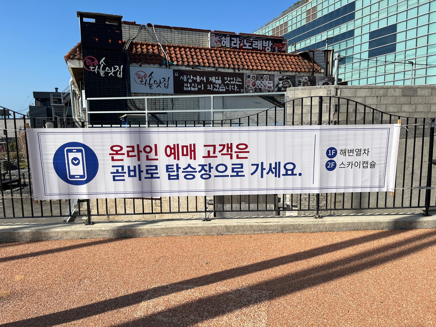해변열차와 스카이캡슐 온라인 예매 고객은 매표소를 거치지 않고 바로 탑승장으로 가서 입장할 수 있습니다. 아무래도 탑승하실 분들은 미리 예약하는 게 좋겠죠?