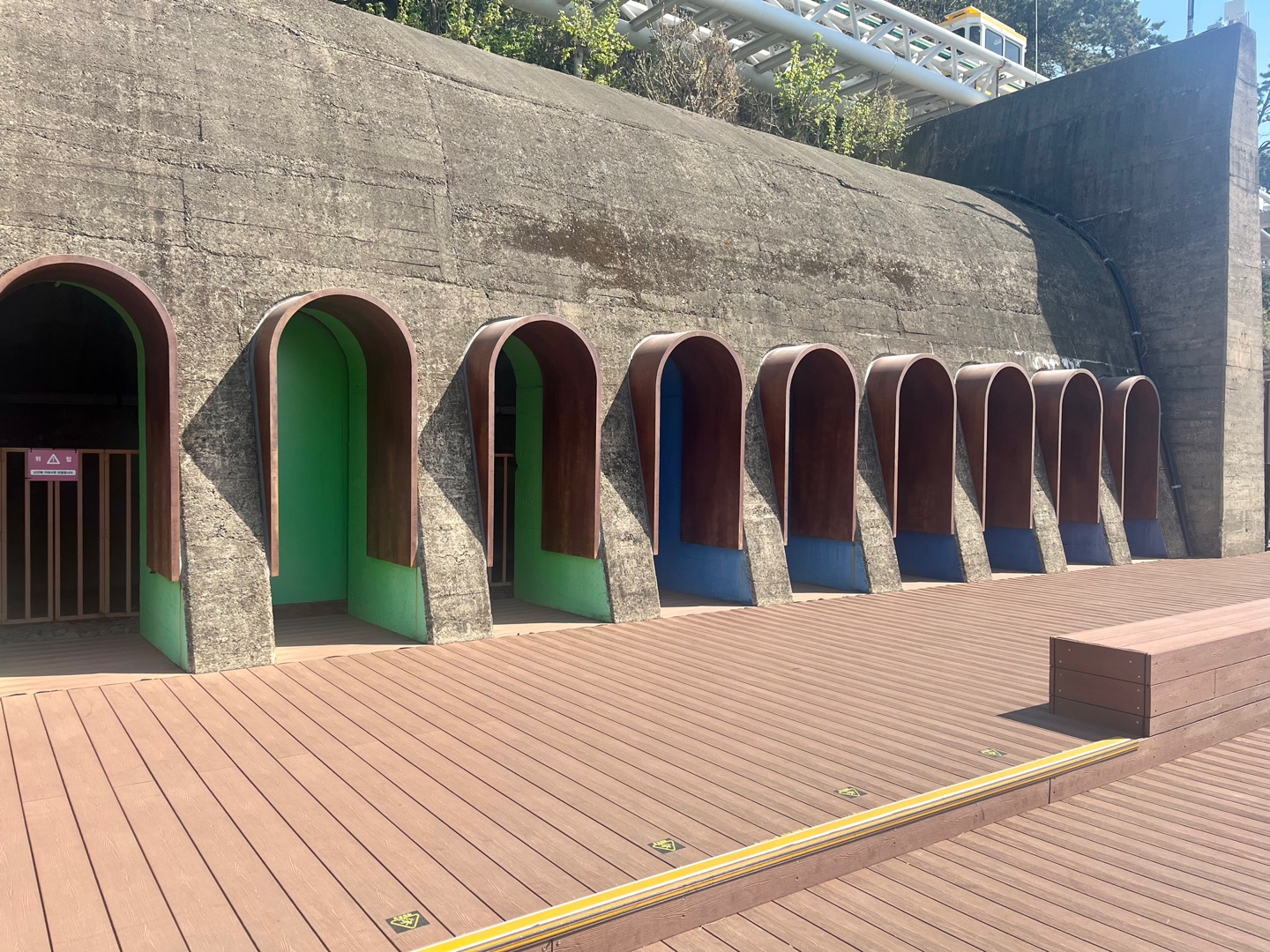 밖에서 바라보는 달맞이 터널은 알록달록 귀엽습니다. 실로폰같아 보이기도 하네요. 해변열차를 타고 있을 땐 바깥을 향해 뚫린 문 사이로 바다가 새어 들어옵니다. 잠시지만 열차에 앉아 색다른 시선으로 바다를 바라볼 수 있는 달맞이터널입니다 :)