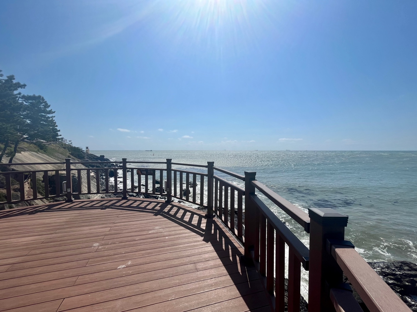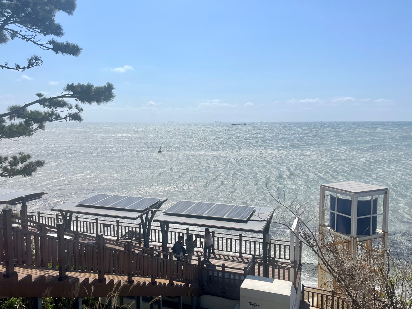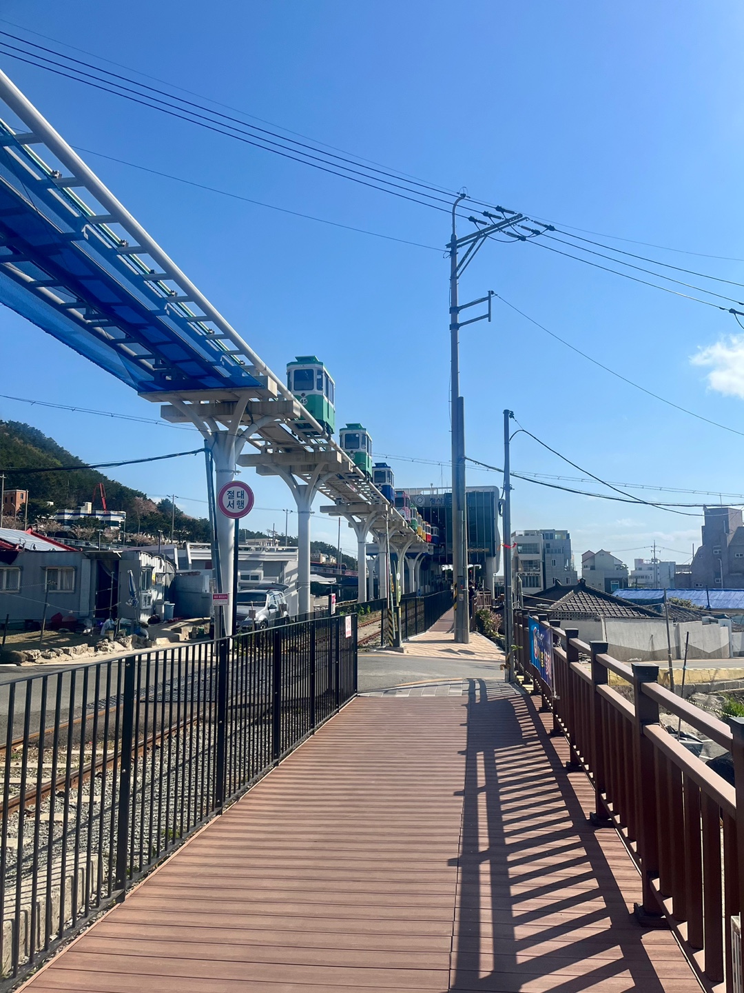 작은 어촌마을 분위기가 나는 청사포에 도착했습니다. 멀리 청사포 정거장이 보이고 스카이캡슐이 줄지어 나옵니다. 청사포에서 조금만 더 가면 '다릿돌전망대'라는 곳이 나옵니다. 전망대 끝에 서서 펼쳐진 바다를 감상해 보는 것도 추천드립니다.