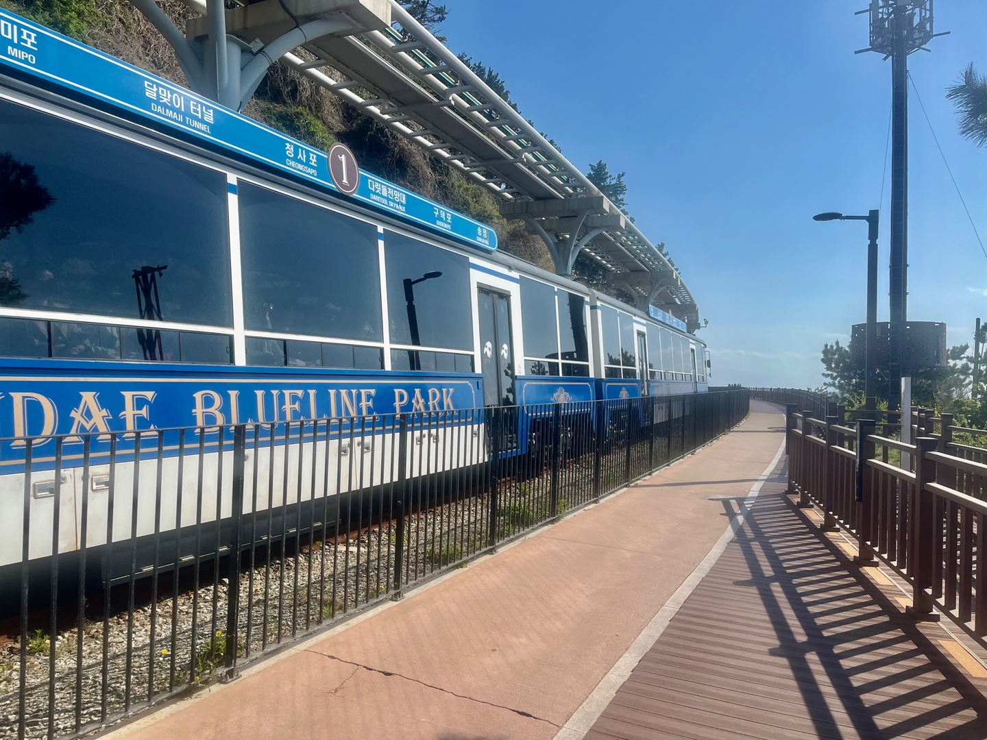 미포정거장에 도착했습니다. 미포에서 청사포까지 약2km코스를 산책해 보았습니다. 블루라인파크 산책로를 걸으며 스쳐가는 해변열차와 스카이캡슐, 그리고 아름다운 부산 바다를 감상해 보시길 추천드립니다.
