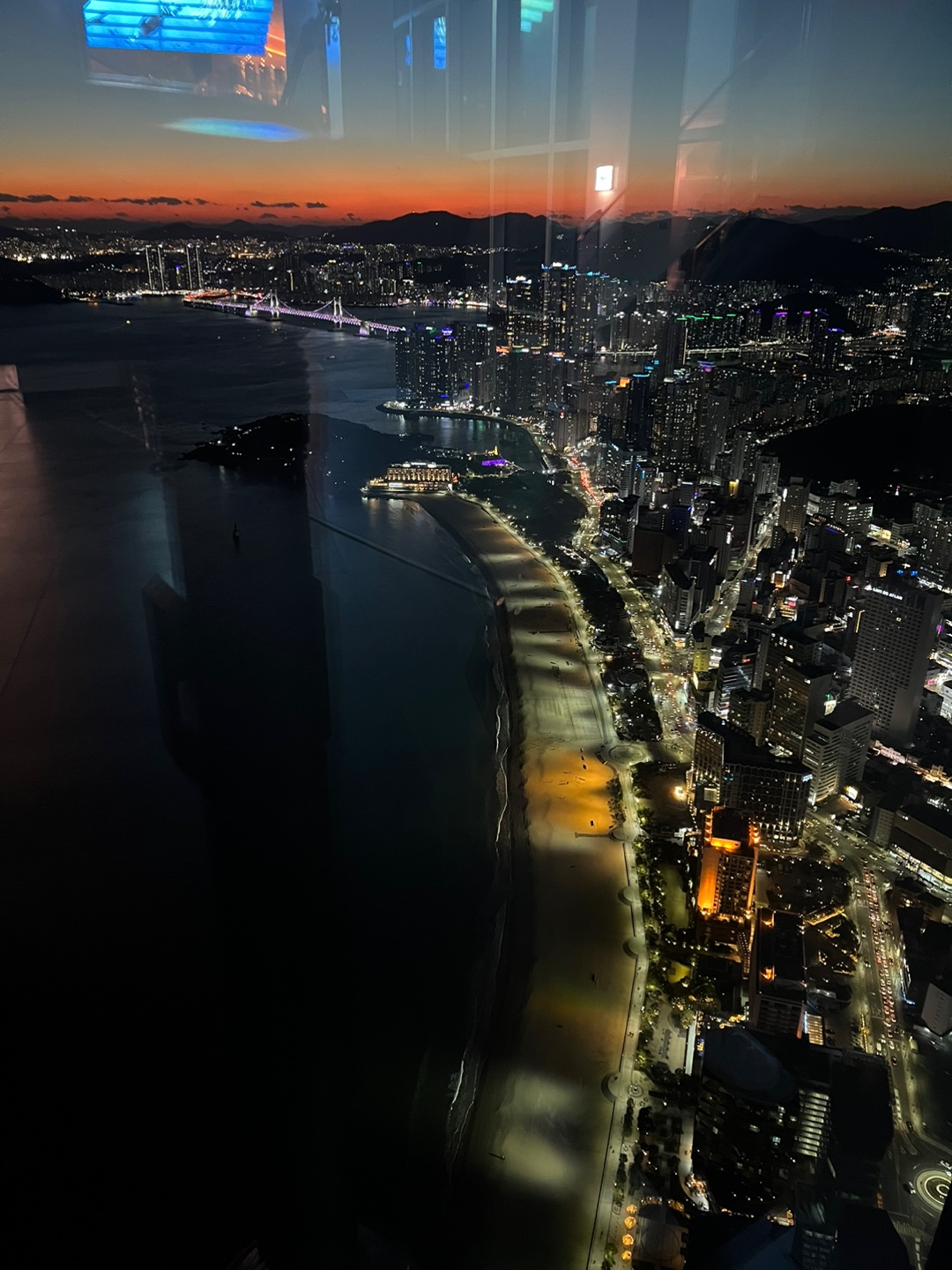 2월 초 기준으로 5시가 넘어가면 해가 점점 지기 시작합니다. 그 시간대에 방문하면 아름다운 해운대의 주간뷰, 해 질 녘, 그리고 야경까지 모두 즐길 수 있어요.