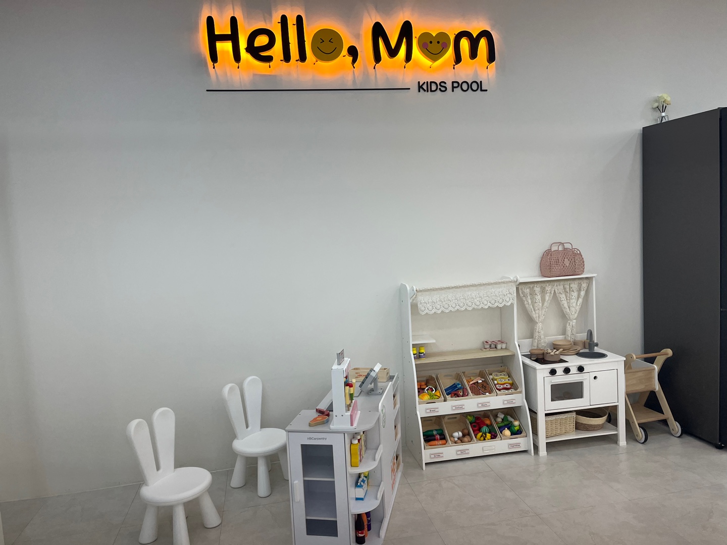 헬로맘은 물놀이가 가능한 프라이빗 키즈카페예요. 단 한 팀만 대여할 수 있어 가격은 조금 비싸지만 넓은 공간을 지인들끼리 자유롭게 이용할 수 있습니다. 아기자기한 인테리어도 돋보이지만 매우 청결하고, 엄마와 아이를 위한 물품이 모두 구비되어 있어요. 주방용품도, 수건도 넉넉하게 준비되어 있기 때문에 아이들 수영복만 챙겨 오시면 됩니다.