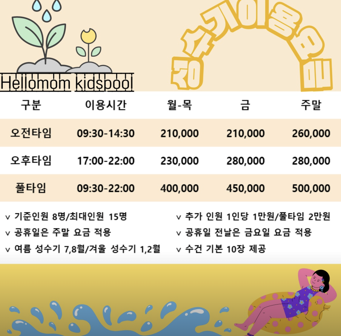 3월, 4월, 5월, 6월, 9월, 10월, 11월, 12월 평수기 180,000원 - 250,000원