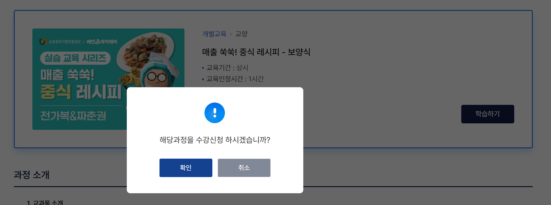 수강신청 후 바로 '온라인 강의실로 이동하겠습니까?' 라는 팝업이 뜹니다.