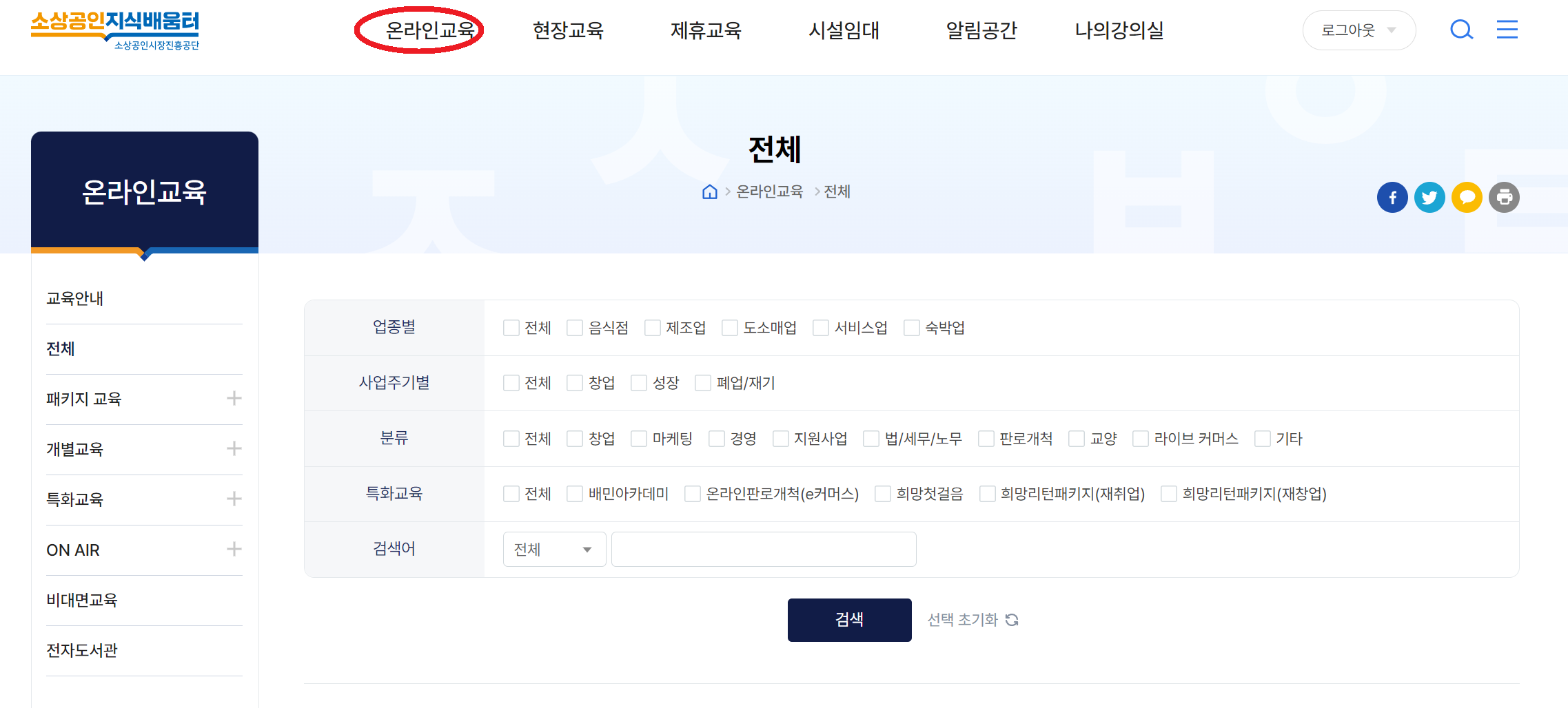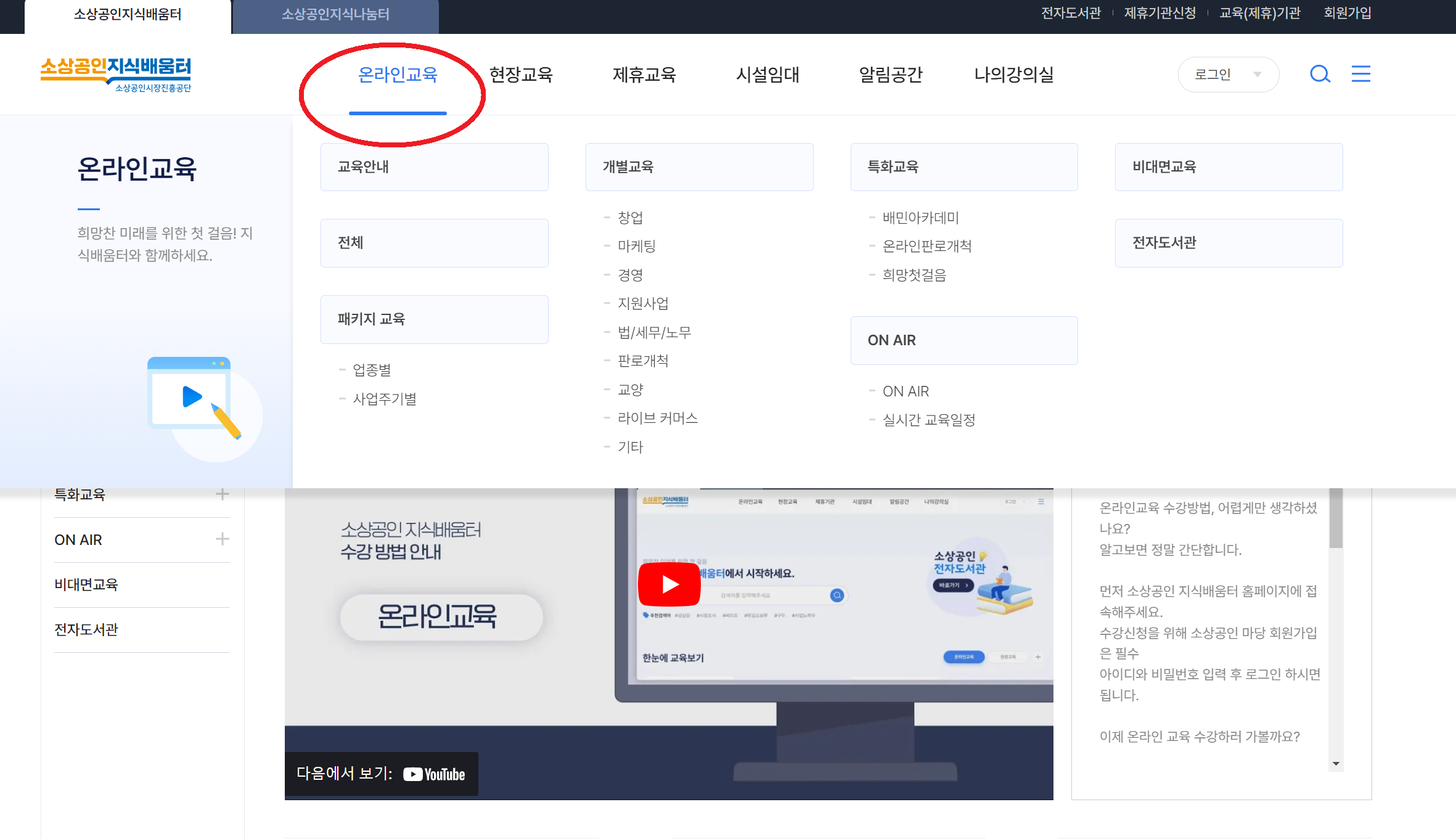 상단 '온라인교육' 카테고리를 클릭해 주세요.