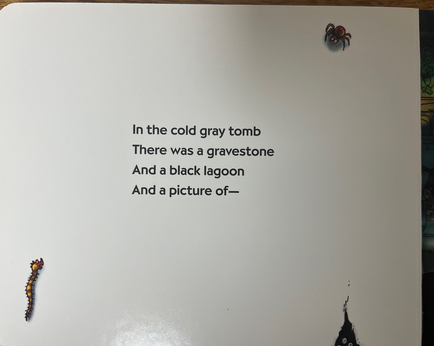 단어도 비슷하게 배치했어요. 'green room'을 'gray tomb'로 'black lagoon'을 'red ballon'으로 바꾸는 등 의미와 은율은 비슷한데 내용과 분위기는 정반대이니 더욱 재미있게 다가오는 것 같습니다.