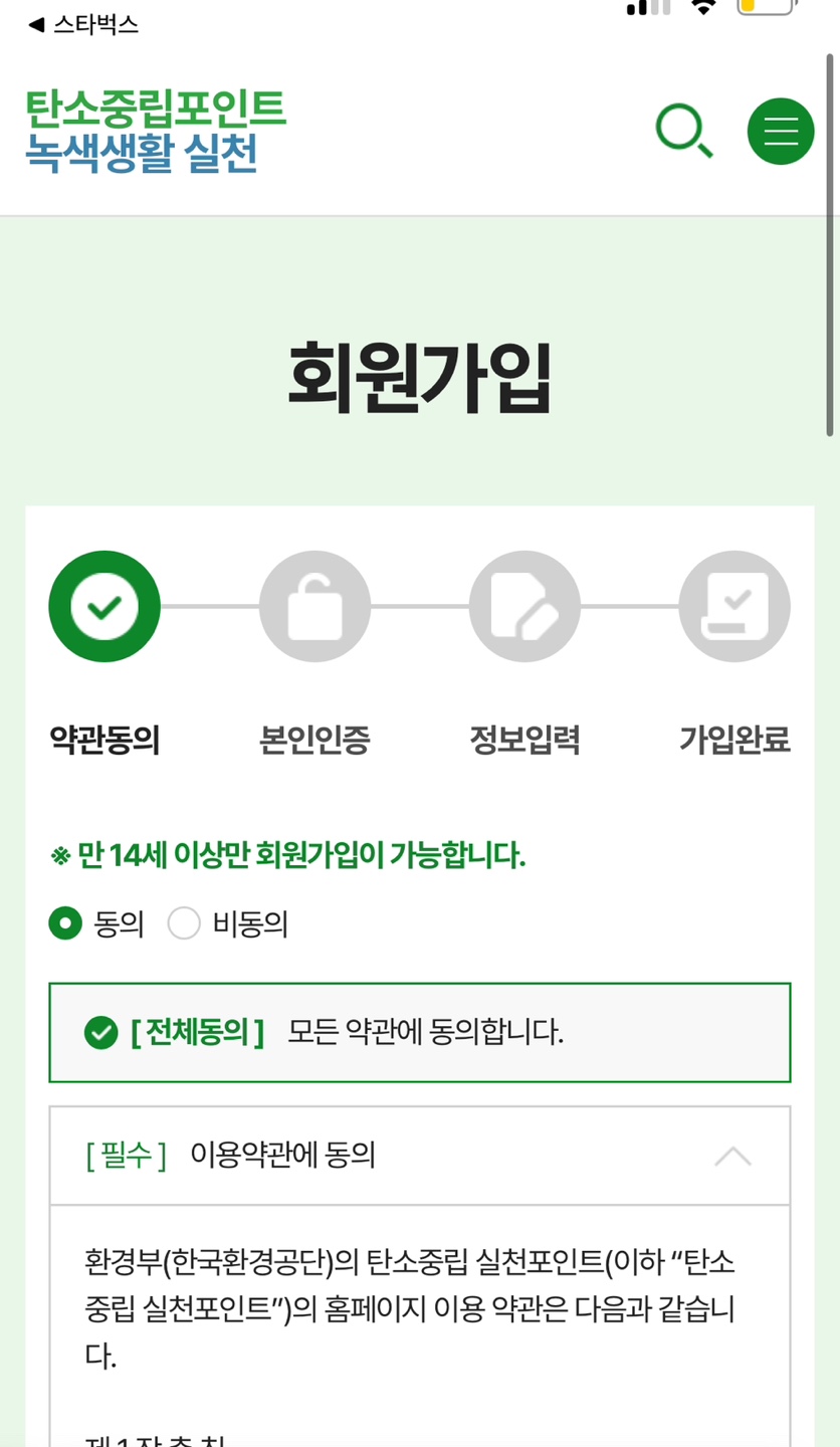 1. 스타벅스 앱과 탄소중립실천포인트 연동하기