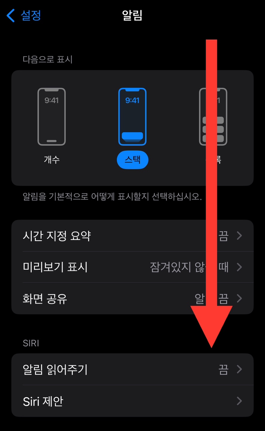 2) '알림'을 누른 후, 가장 하단으로 쭉 내려주세요.