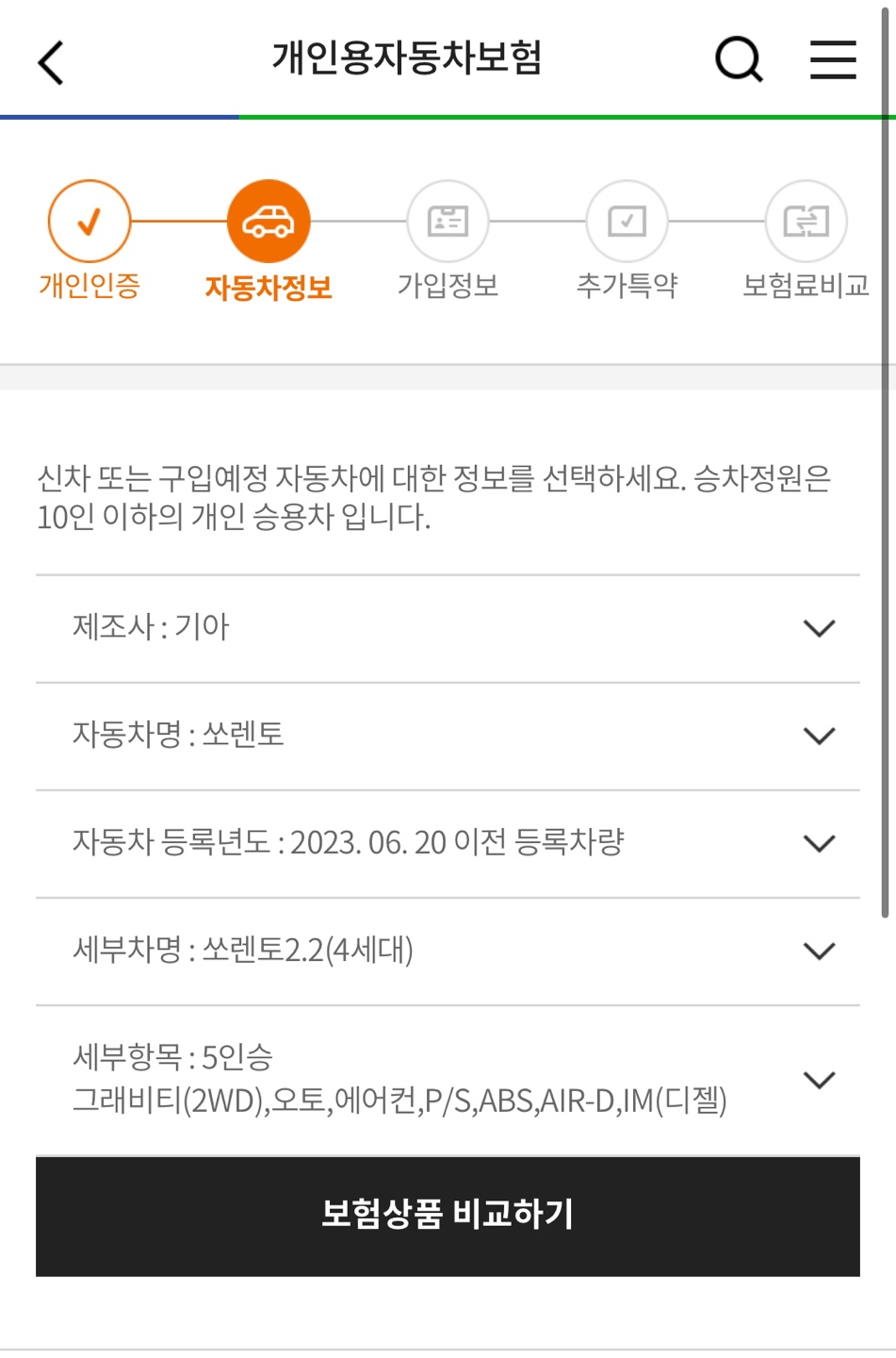 2. 보험 다모아에서 자동차 보험 비교하기