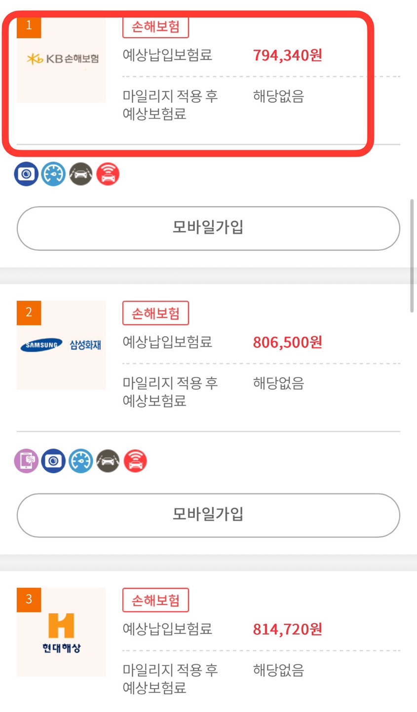저는 분석결과 KB자동차보험이 가장 저렴하게 나와서 KB손해보험 다이렉트 자동차보험을 가입하면 될 것 같습니다.