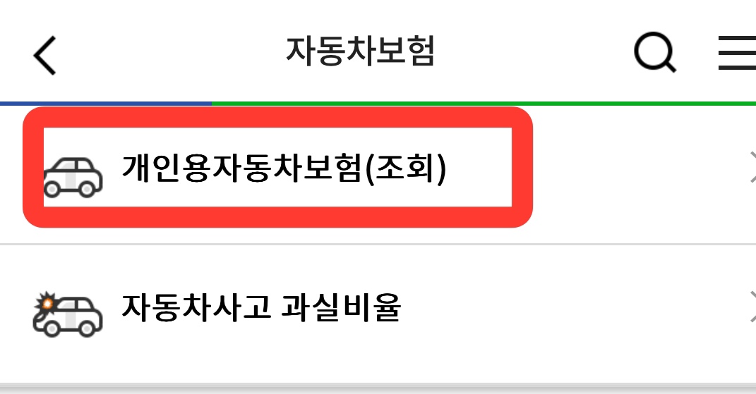2) 개인용자동차보험(조회) 버튼을 눌러주세요.
