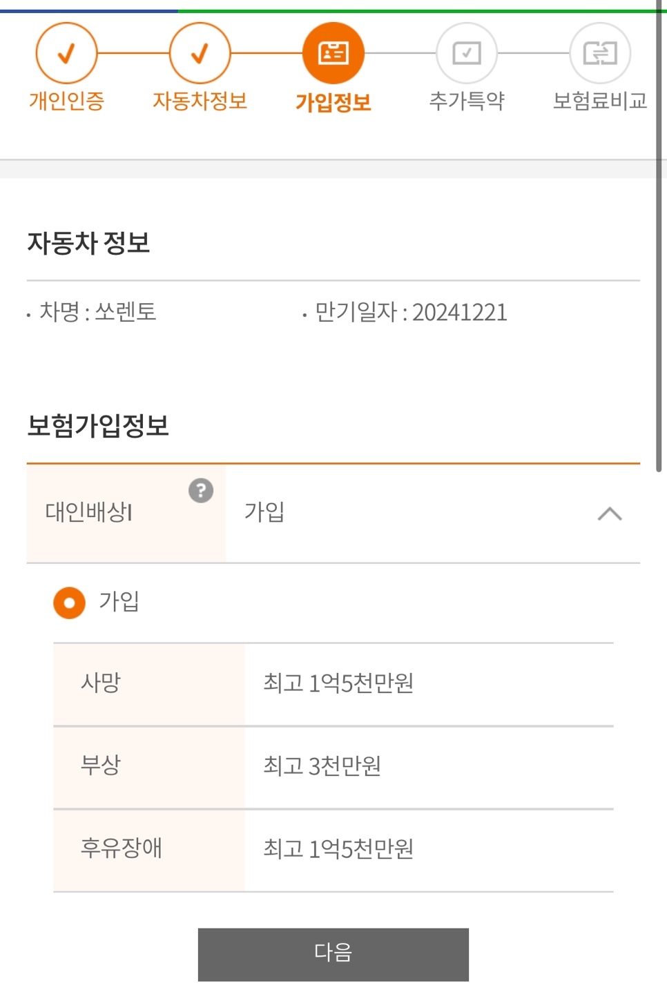 6) 보험가입정보를 대략적으로 입력합니다.