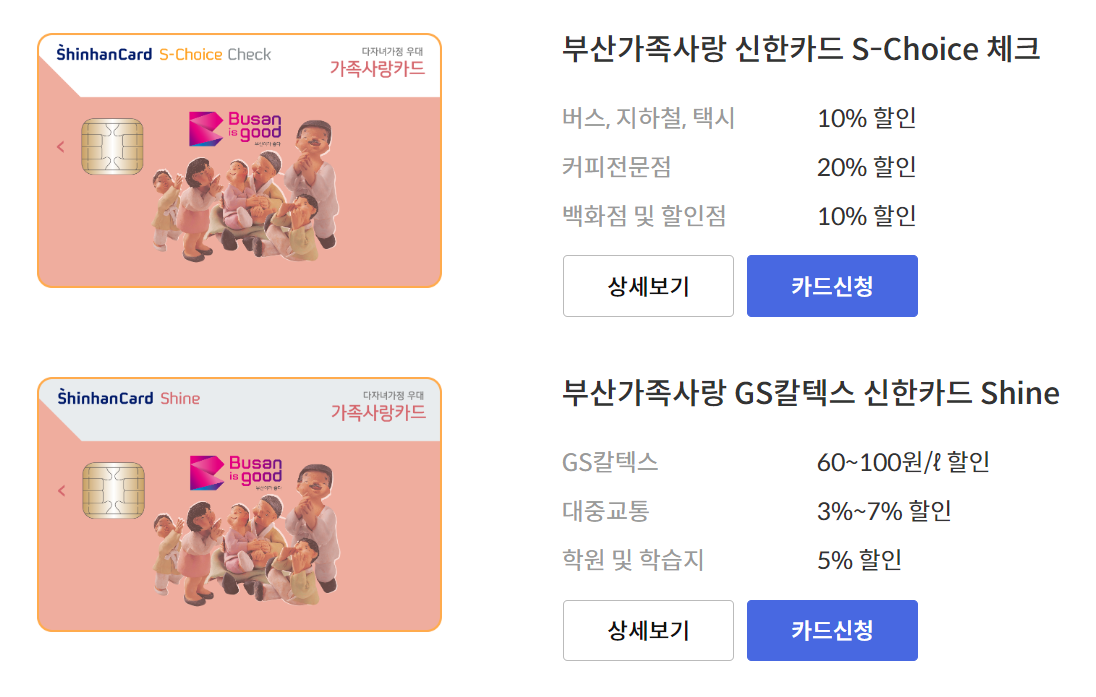 3) 부산시 다자녀 카드 '가족사랑카드' 혜택