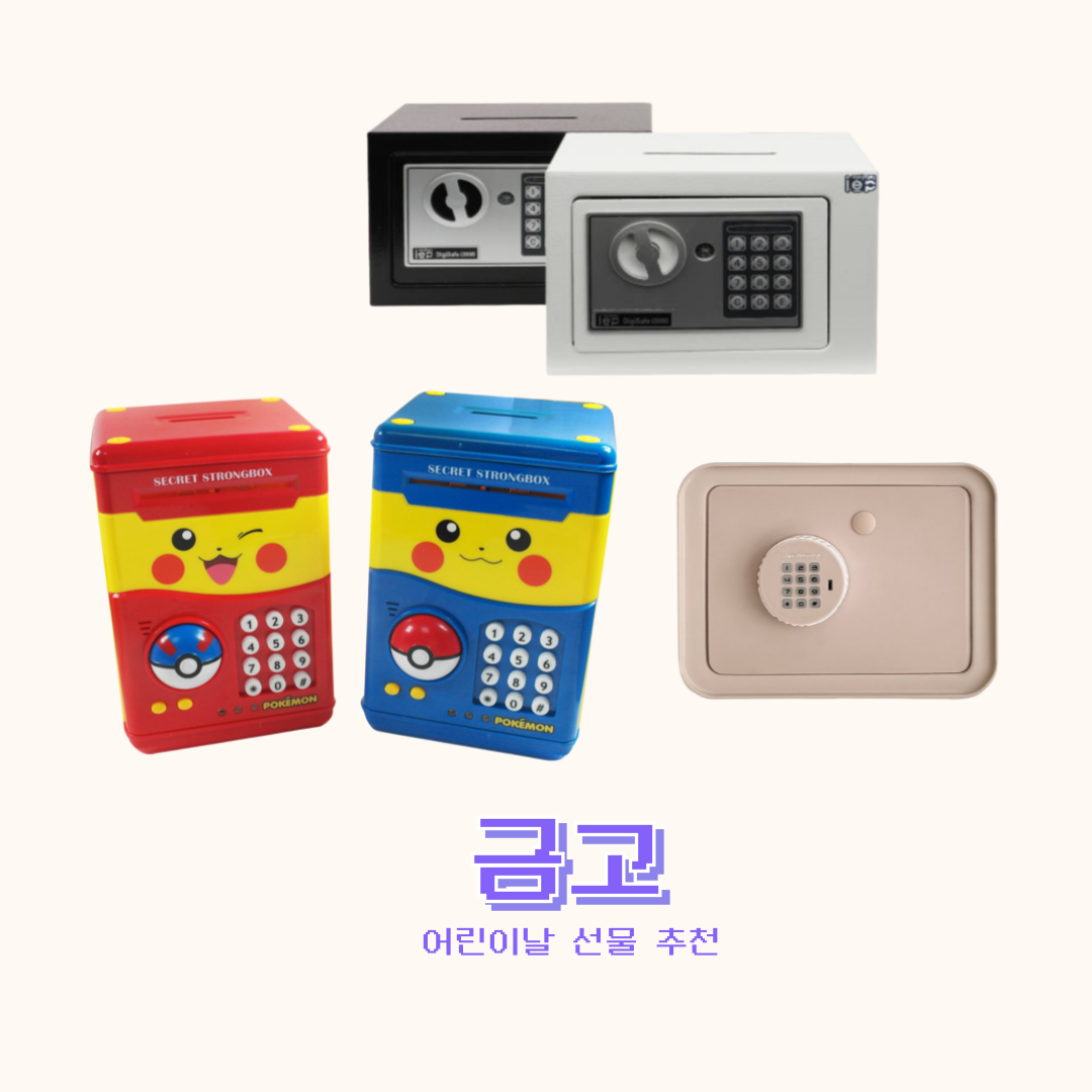 저금통으로도 쓸 수 있는 자동 비밀 금고 선물은 어떠신가요? 장난감 금고부터 실제 미니 금고까지 다양한 종류가 있습니다. 저금통 용도로 사용하려면 포켓몬이 캐릭터 컨셉으로 만들어진 금고를 추천드리고요. 아이의 소중한 잡화(?)들을 다양하게 보관할 용도라면 실제 미니 금고를 추천드립니다. 이런 걸 왜 좋아하는지 모르겠지만 저희 집에 오는 아이들마다 금고에 관심을 보이길래 선물 목록으로 넣어보았습니다. 가격대는 2만 원대부터 다양합니다.