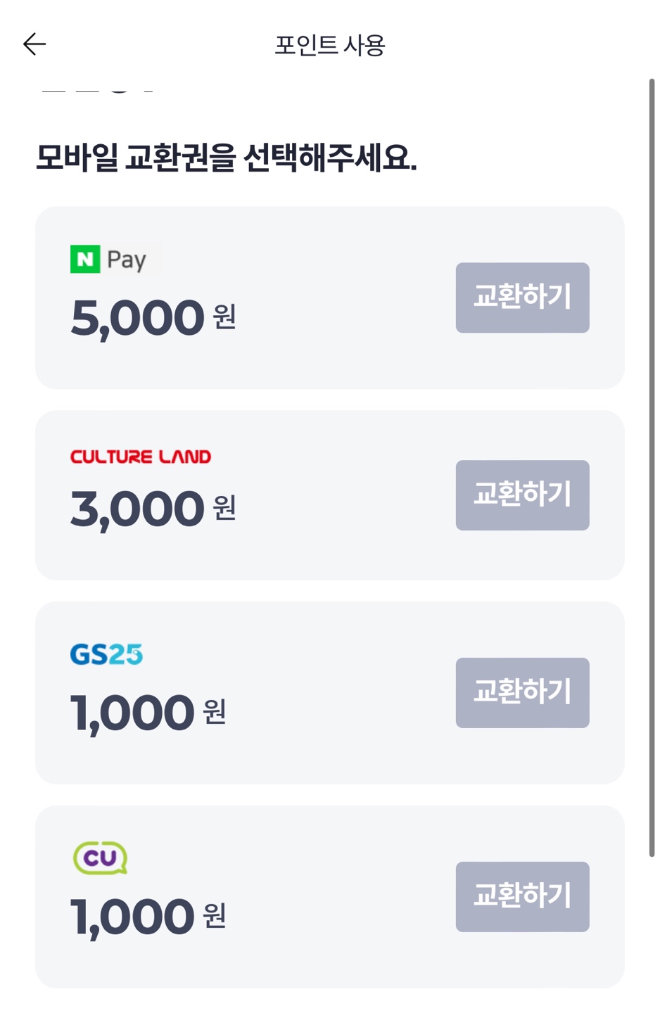 더쎈카드의 포인트는 네이버페이나 편의점 상품권 등으로 교환하여 현금처럼 사용할 수 있답니다.