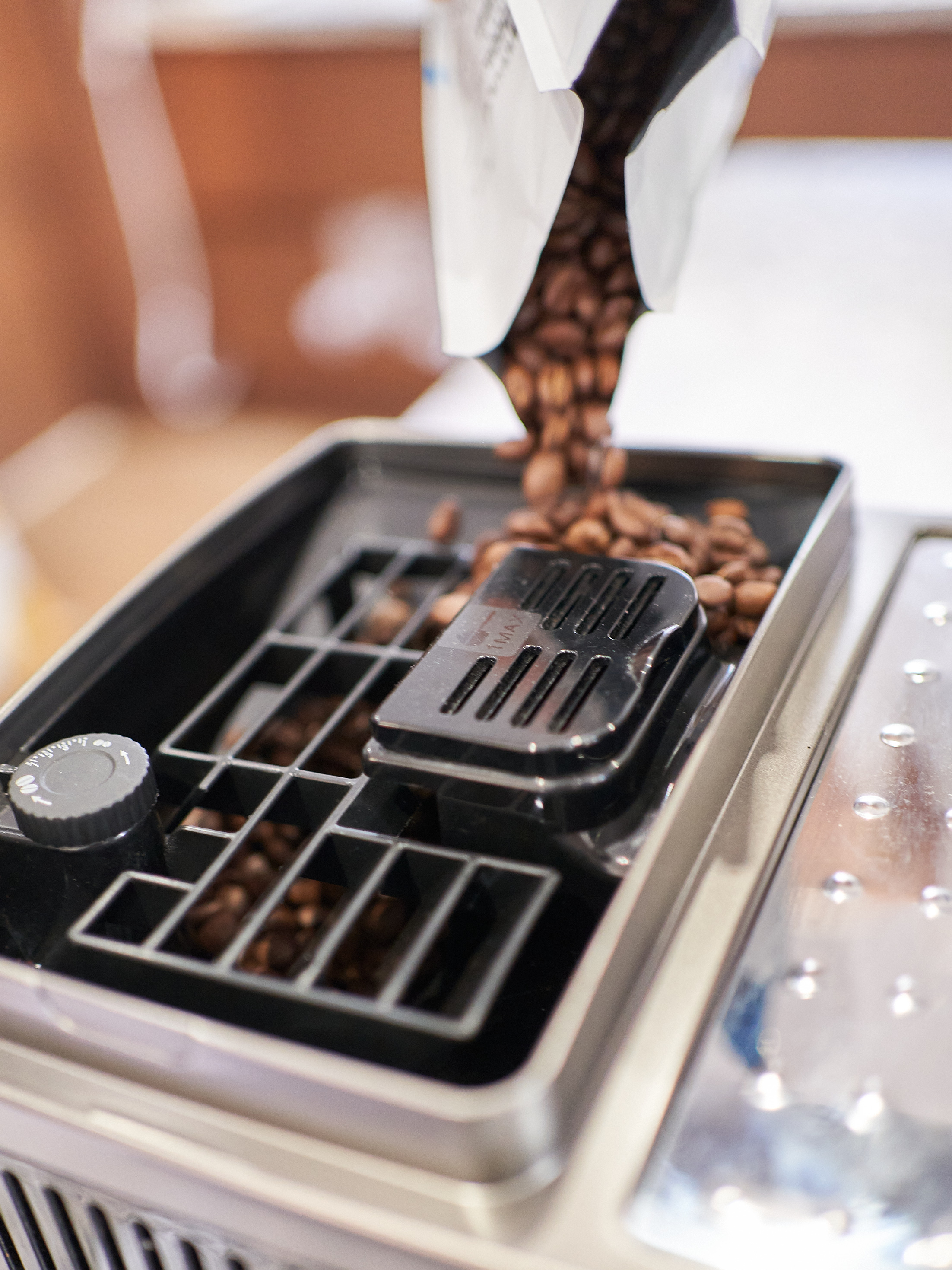 다크한 원두에 비해 살짝 연한 색감의 에스프레소가 추출됩니다. 신선한 에스프레소 향이 은은하게 퍼지면서 기대감도 상승!