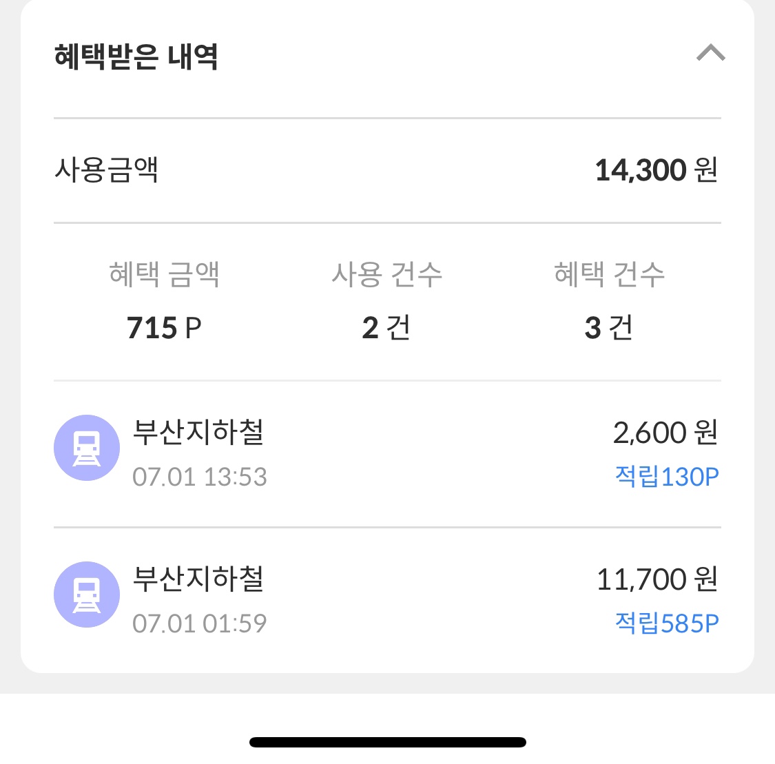 7월 10일 결제건이 총 4건인데 혜택건수에서는 1건으로 취급됩니다. 같은 날 결제한 건은 혜택건수에서 1건으로 처리된다는 것을 알 수 있습니다.