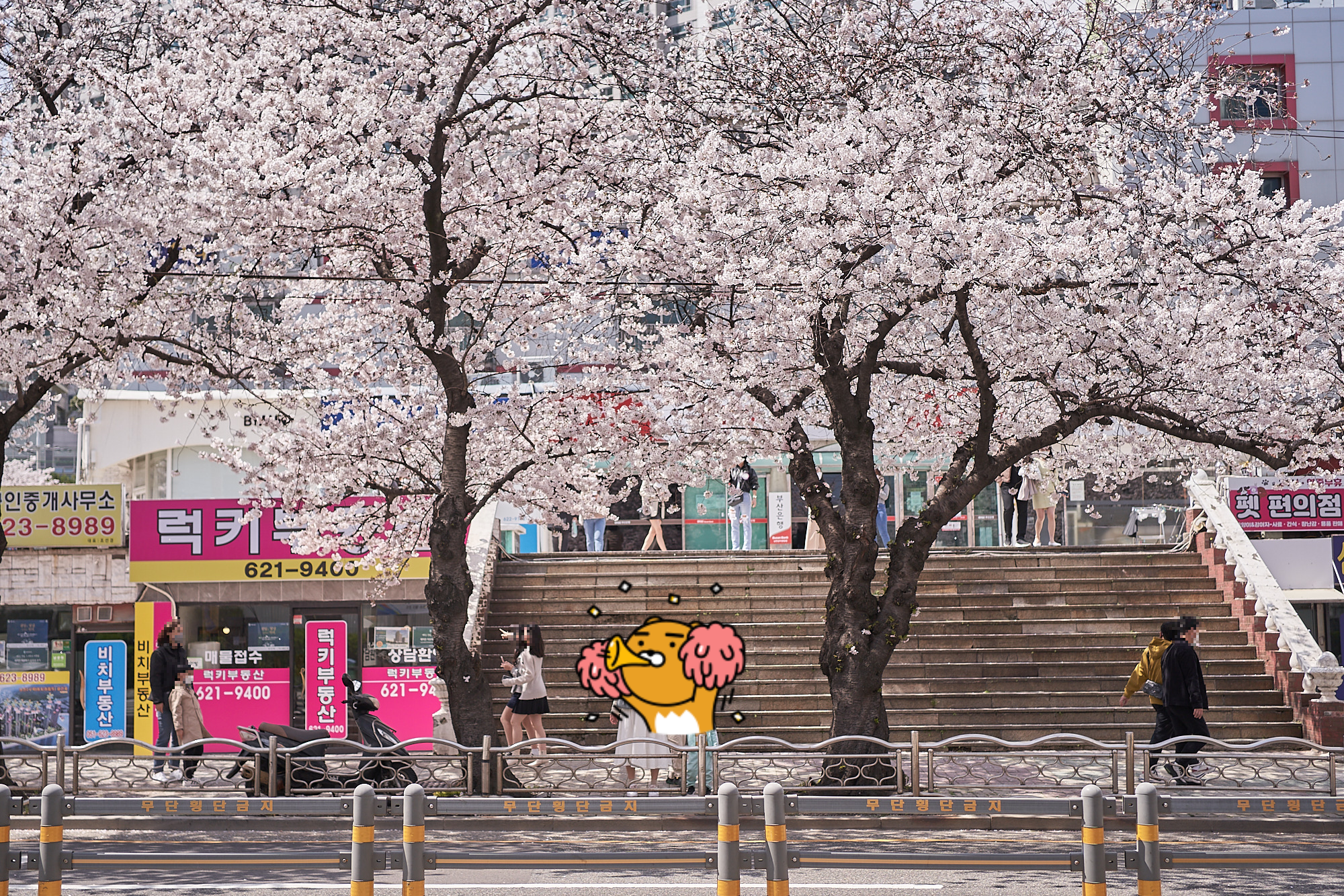 높다란 빌딩숲이 많은 화려한 부산에서 독특한 분위기를 내는 삼익비치가 참 예뻤는데 아쉽습니다. 길도 좁고 사람이 많아 느긋한 벚꽃놀이를 즐기기엔 조금 불편하지만, 곳곳에 삼익비치만의 특색있는 포토존이 있어 사진찍고 놀다보면 금방 시간이 가더라고요.