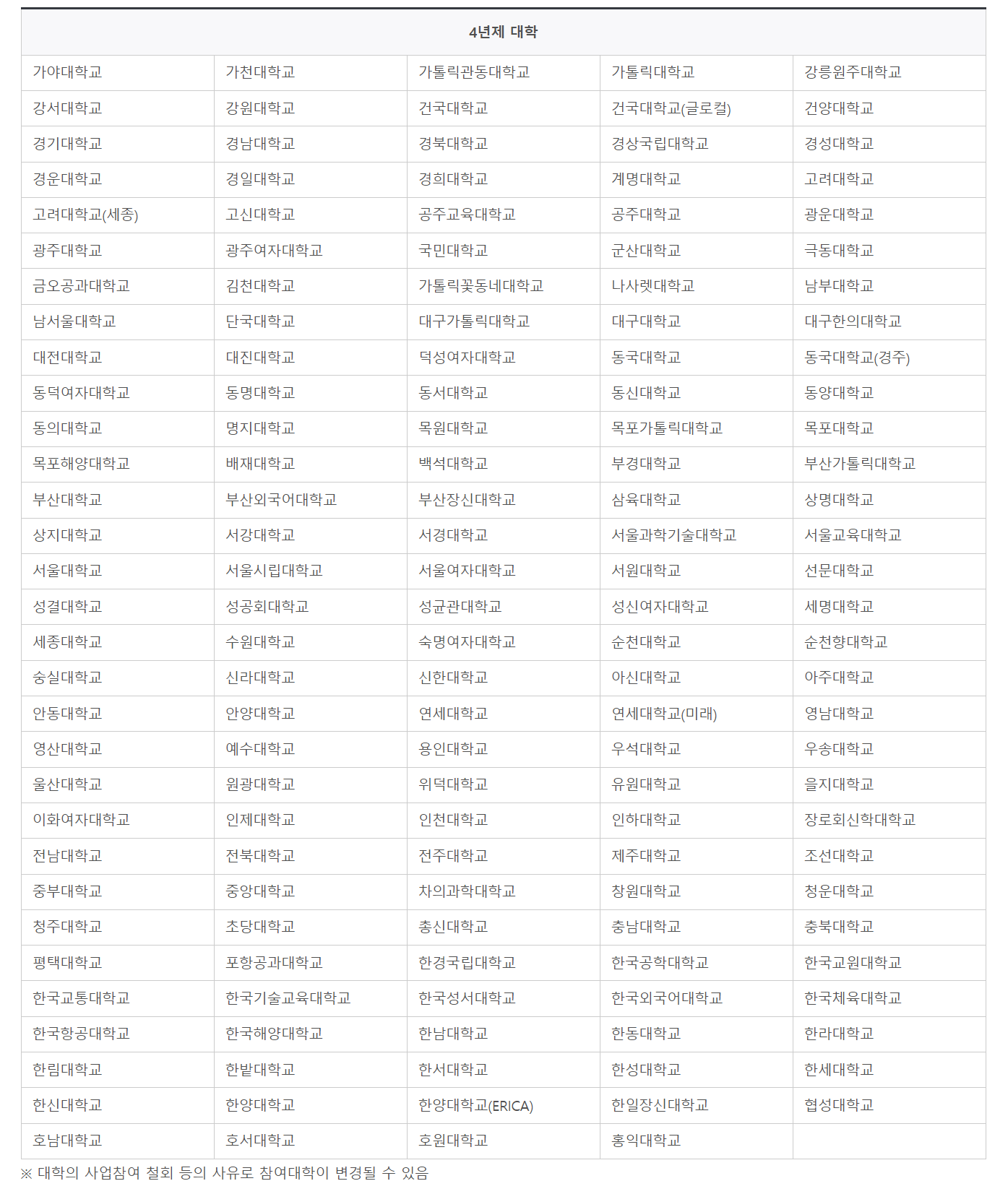 - 국가장학금 2유형 지원 대학 리스트(4년제)