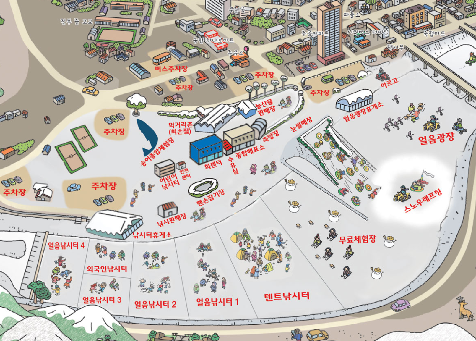 오른쪽 한켠에는 얼음광장과 눈썰매장이 있어 다양한 겨울놀이까지 완벽하게 준비되어 있답니다.