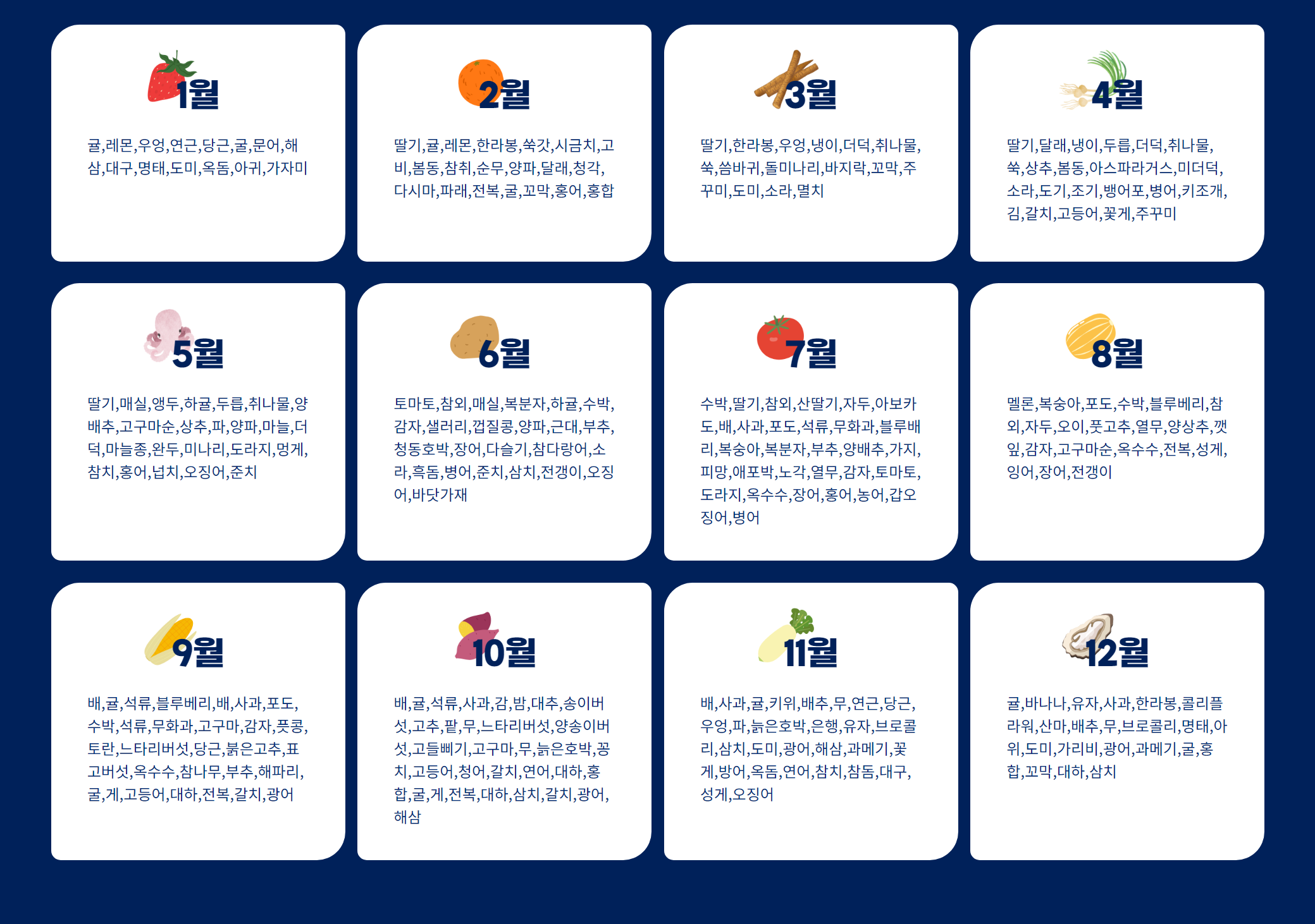 제철상품 월별 카테고리