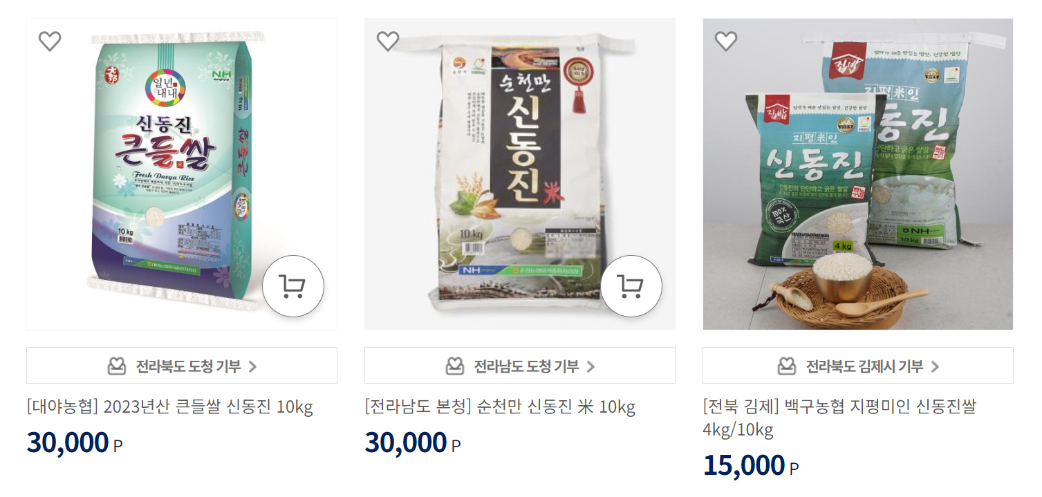 답례품 추천 '신동진쌀' 둘러보러 가기
