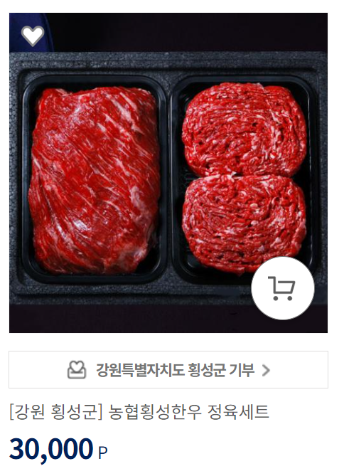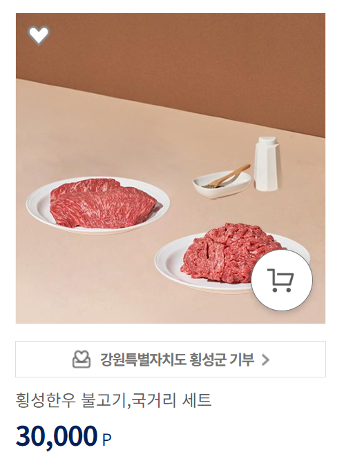 답례품몰에 무려 횡성한우가 있습니다. 다만 다른 지역 한우 불고기 세트와 비교했을 때 같은 가격에 용량이 더 적네요.
