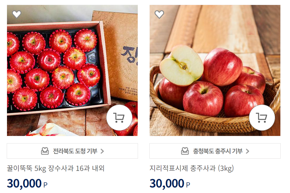 곧 설날이 다가옵니다. 사과나 배는 명절 필수 과일인데요. 답례품몰에서 원하시는 과일을 검색하여 마음에 드는 상품이 있는지 살펴보세요.
