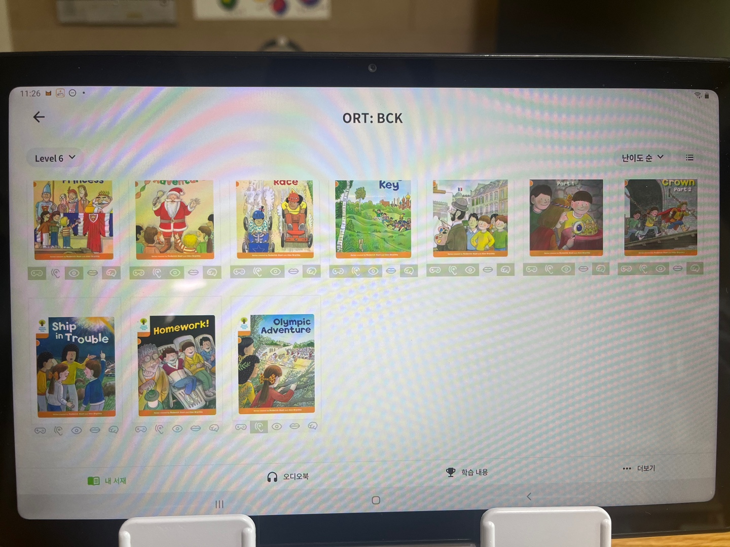 리딩 앤에서 구매한 ORT퓨처팩을 이용 중입니다. 6개월 정도 이용했고 현재 레벨 6단계의 책을 읽고 있습니다. 정확히는 레벨 6 책을 읽을 수는 없고 음원을 듣고 있습니다.