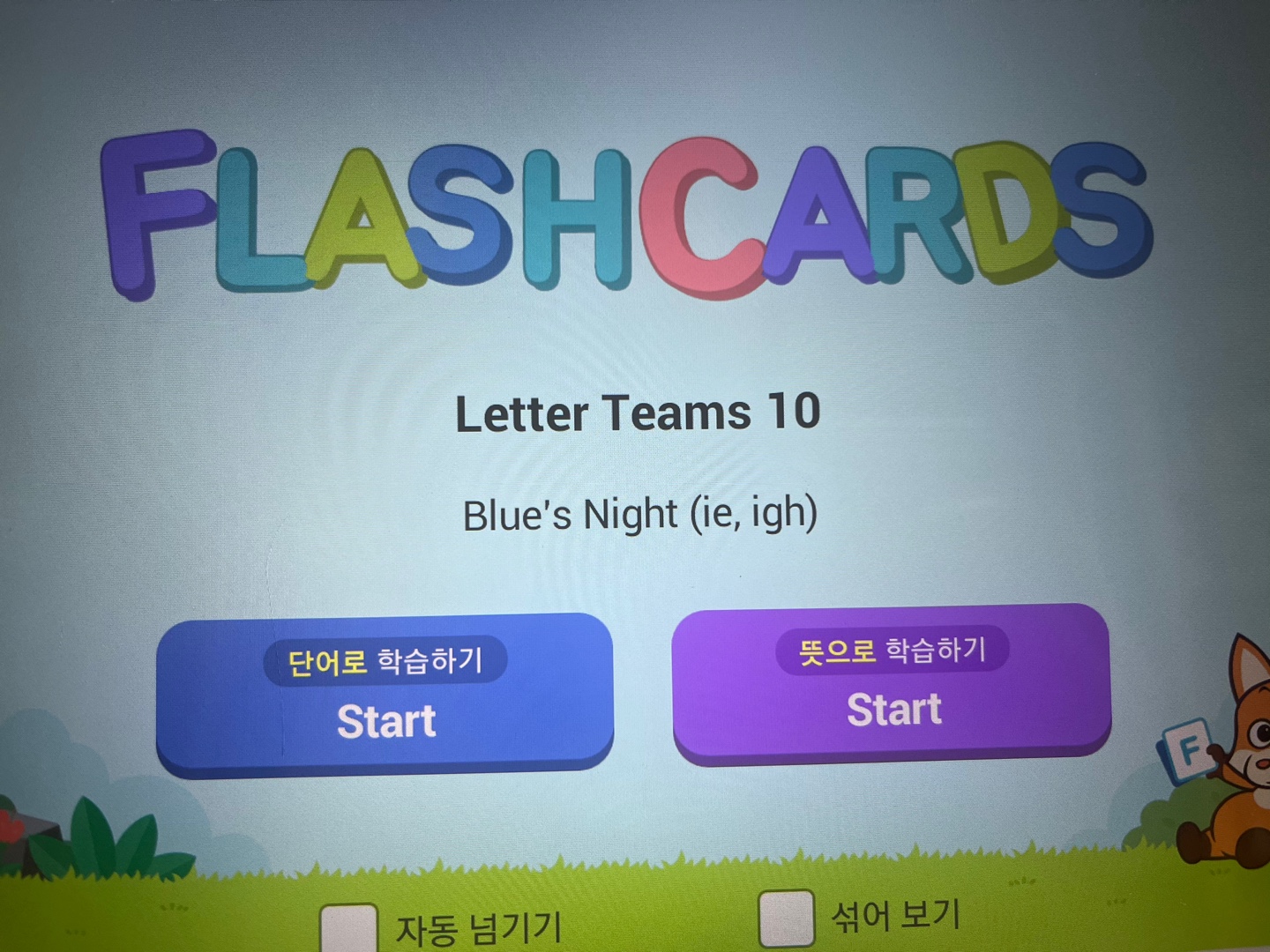 리틀팍스 사이트를 이용 중이라 리틀팍스 파닉스 영상을 활용하여 파닉스를 복습하고 새롭게 배우고 있습니다. 플래시 카드로 오늘 배울 단어들을 확인하고, 오늘 배울 단어의 파닉스 규칙을 적용하여 스스로 읽어봅니다.