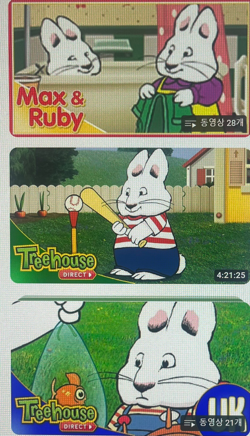 아이는 마지못해 보기 시작했습니다. 그런데 갑자기 "엄마, 원래 맥스 앤 루비가 이렇게 재밌었나?" 라고 묻더니 그 때부터 맥스앤루비 전 시즌을 몰입하여 보는 것이 느껴졌습니다.
