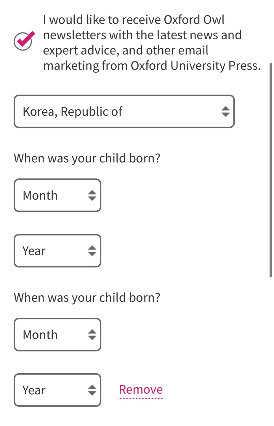 Add another child버튼을 누르시면 자녀를 추가할 수 있으니 아이 수대로 입력해주세요.