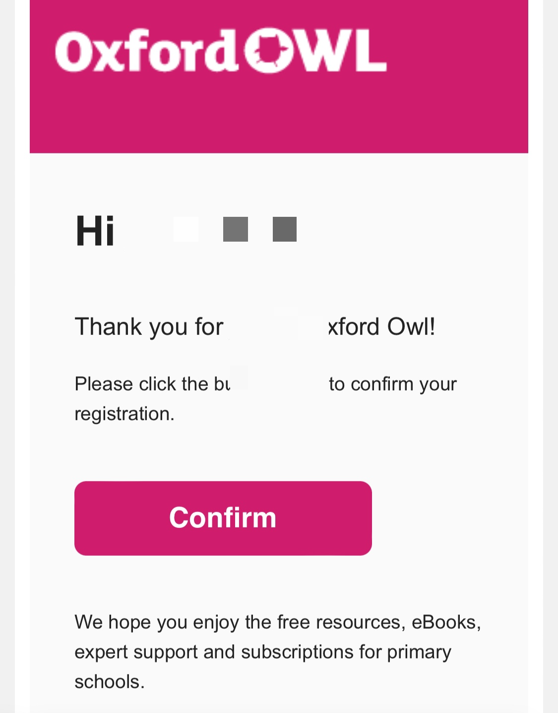 8) Oxford OWL에서 보낸 e-mail에서 Confirm버튼을 누르면 무료 회원가입이 완료됩니다.